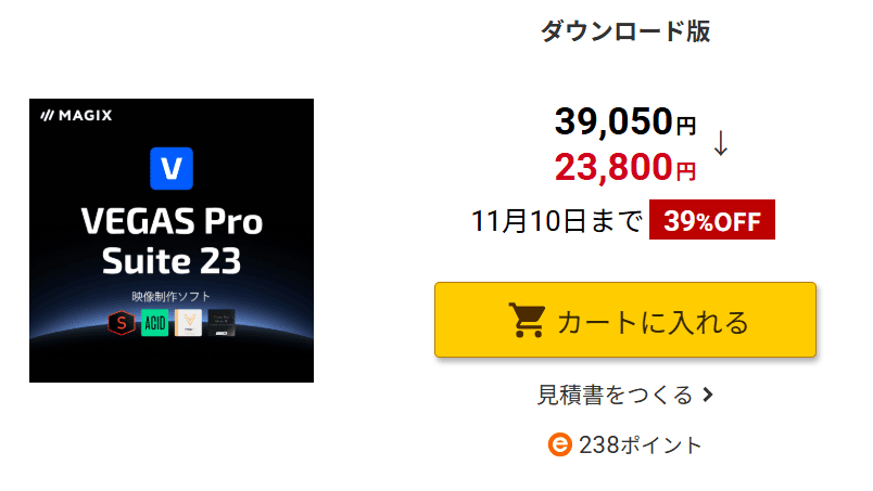 「VEGAS Pro Suite 23」(39,050円 ⇨ 23,800円)